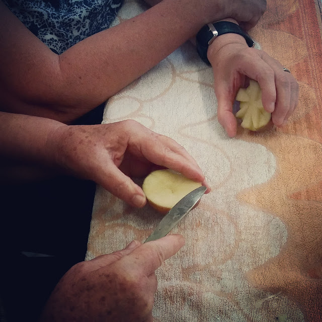 potato printing from paper to fabric this week, so next